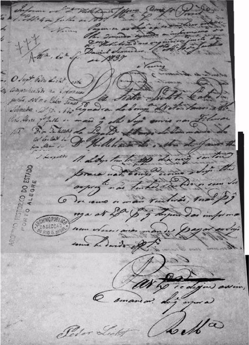 5. Doc. 777/2. Autoridades Militares, maço 1 lata 185. Arquivo Histórico do Rio Grande do Sul : Porto Alegre.