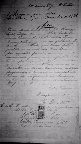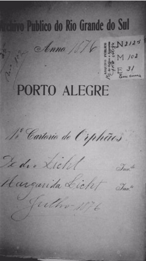 1. 1º Cartório de Orfãos e Ausentes, em julho de 1876. Feito n. 2125, Arquivo maço 102, Folha 2 Estante 31 em cima. - Arquivo Público do Estado do Rio Grande do Sul : Porto Alegre.