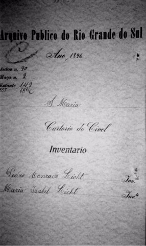 2. Cartório do Cível de Santa Maria, Ano 1898, Autos n 20, Maço n 2, Estante 149, Est. 68. - Arquivo Público do Rio Grande do Sul : Porto Alegre.