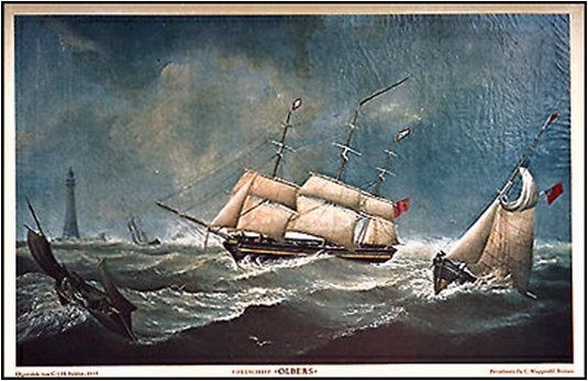 “Partiu da província renana com destino ao porto de Bremen, gastando nessa viagem, feita em carreta puxada por animais, cerca de três semanas. Ali chegados, tiveram que esperar outras 14 (catorze) semanas até encontrarem um navio que os trouxesse ao Brasil. Chegou enfim o dia em que nos despedimos de nossa Pátria. Embarcamos no navio Olbers, de três mastros, mas já um tanto velho. Além do comandante e dos marinheiros, vinham neste navio 875 passageiros.